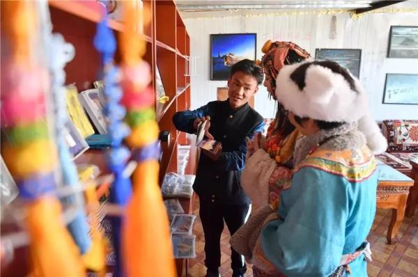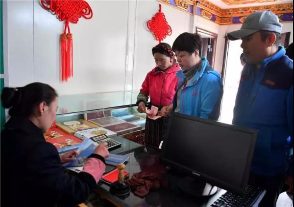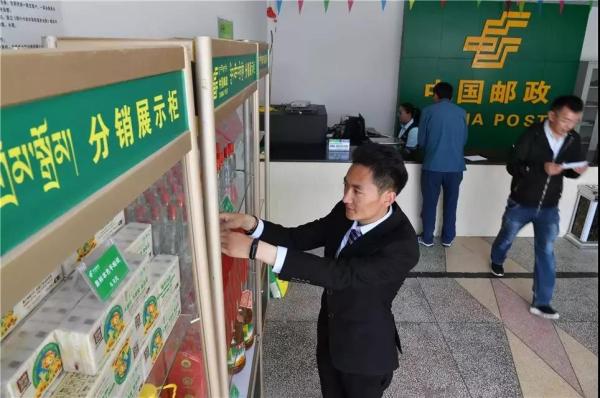 西藏自治區納木錯自然保護區郵局,旦增洛珠(左)正在給游客介紹旅游產品。自農村電商工作開展以來,西藏郵政已在全區各地(市)多個郵政營業網點、便民服務站、小商超店、旅游景點等地建立“郵掌柜”、郵樂購、郵樂網、天上西藏E郵等網上購物和銷售系統。