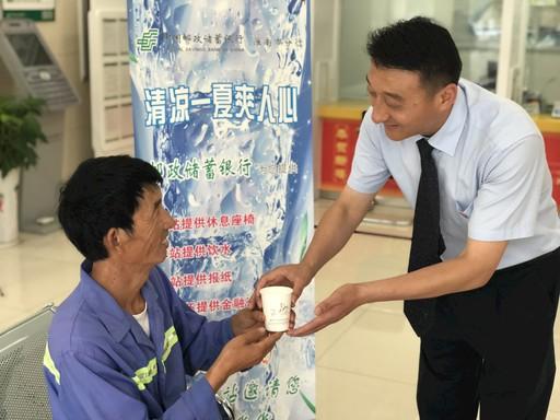 此外,在羅光明的建議下,淮南市分行以網(wǎng)點為依托,建立了19個“怡心小站”為戶外工作者和當(dāng)?shù)厝罕娝颓鍥觯_光明經(jīng)常會邀請環(huán)衛(wèi)工人、執(zhí)勤民警、快遞員、外賣員等前往“怡心小站”休憩并送上解暑茶水。“如今到郵儲銀行辦業(yè)務(wù),碰到下雨天還可以免費借傘,這里的服務(wù)太周到了。”王女士由衷地感慨。不僅在酷熱天氣為辛苦奔波的戶外工作者送清涼,羅光明還在網(wǎng)點配備了誠信便民傘。每到下雨天,在淮南市的大街小巷上,一把把印有“中國郵政儲蓄銀行”的便民雨傘猶如一張張笑臉,一點一滴中溫暖著萬千大眾。