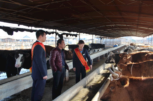 利津縣支行黨員來到鹽窩鎮(zhèn)鹽中村養(yǎng)牛場調(diào)查。