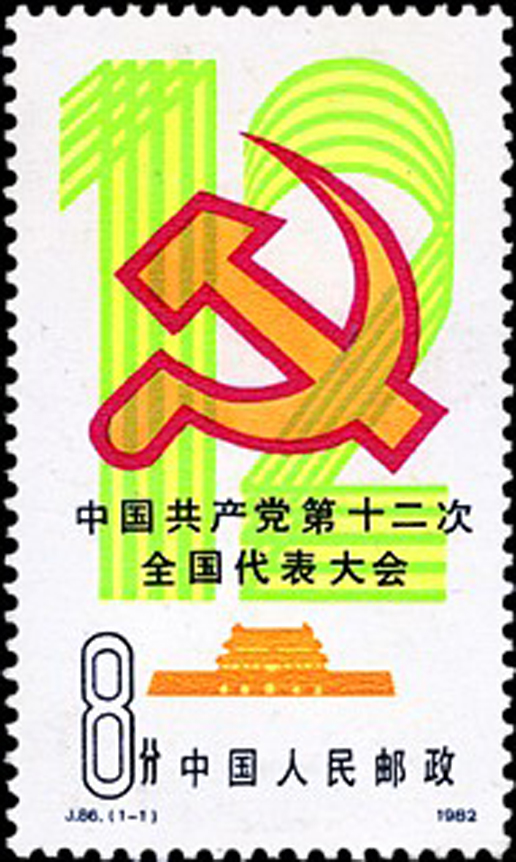 中國共產黨第十二次全國代表大會于1982年9月1日至11日在北京召開。參加這次大會的正式代表1600人(出席開幕式1545人),候補代表160人(出席開幕式145人),代表著全國3965萬黨員。該套郵票由盧天驕設計,于1982年9月1日發行。