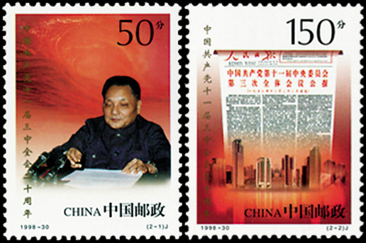 1978年12月18日至22日,中國共產黨十一屆三中全會在北京召開,共有中央委員169人,候補中央委員112人出席了大會。全會作出了把工作的重點轉移到社會主義現代化建設上來的決策。為了紀念黨的十一屆三中全會召開20周年,1998年12月18日,國家郵政局發行了《中國共產黨十一屆三中全會二十周年》紀念郵票,全套2枚,由蘇海一設計。