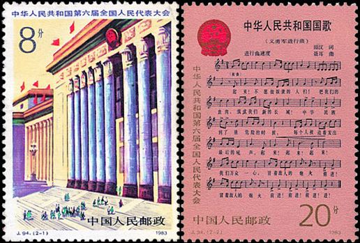 第六屆全國人民代表大會于1983年6月6日至6月21日在北京召開。這是按照新憲法選舉產生的首屆全國人民代表大會。這次會議的主要任務是審議政府工作報告,審查和批準國民經濟和社會發展計劃、國家決算,選舉和決定新的一屆國家領導人員,組成新的一屆國家領導機構,并審批一些相關政策。大會號召全國人民同心同德,發奮圖強,繼續朝著把中國建設成為現代化的,高度文明、高度民主的社會主義國家的宏偉目標前進。該套郵票由萬維生設計,于1983年6月6日發行。