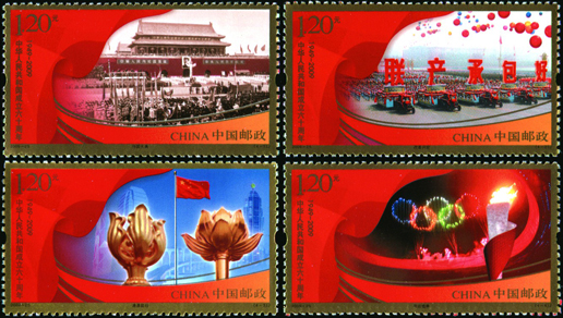 2009年10月1日是中華人民共和國成立60周年紀念日。60年來,全國各族人民在中國共產黨的領導下,以一往無前的進取精神和波瀾壯闊的創新實踐,譜寫了中華民族自強不息、頑強奮進的壯麗史詩。該套郵票由張藝謀、陳名杰設計,于2009年10月1日發行。