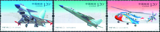 2011年4月17日,新中國航空工業創建60周年之際,中國郵政發行《中國飛機(二)》特種郵票1套3枚,郵票內容分別為“殲-10殲擊機”、“飛豹殲擊轟炸機”、“AC313直升機”。該套郵票由方軍、孟慶晨設計。