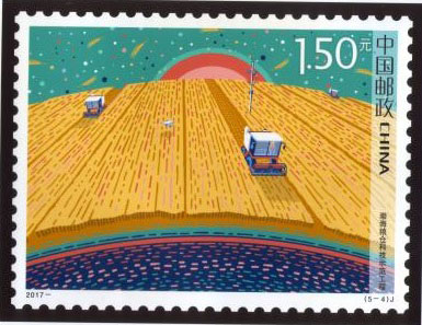 科技興則民族興,科技強則國家強。黨的十八大作出了實施創新驅動發展戰略的重要部署,科技發展進入了快車道。中國郵政于2017年9月17日發行《科技創新》紀念郵票1套5枚,圖案內容分別為:500米口徑球面射電望遠鏡、“墨子號”量子科學實驗衛星、“探索一號”科考船、渤海糧倉科技示范工程、“神威·太湖之光”超級計算機。該套郵票由杜鈺凱設計。