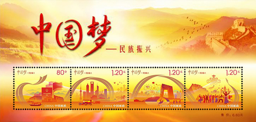 2014年9月20日,中國郵政發行《中國夢—民族振興》特種郵票一套4枚,小全張1枚。郵票內容分別為政治文明、經濟發展、文化繁榮、民族團結。該套郵票由何潔、周岳、陳楠設計。