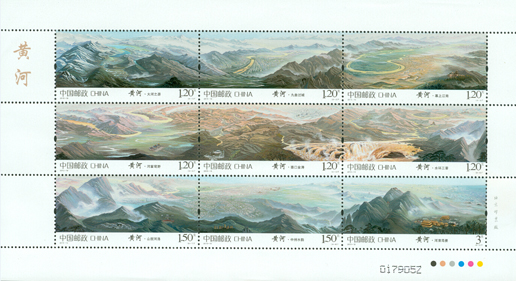 中國郵政于2014年8月23日發行《黃河》特種郵票1套9枚,郵票內容分別為:大河之源、九曲過城、塞上江南、河套穹野、壺口金濤、水環三晉、山攬河洛、中州水韻、河清海晏。郵票以九圖連票,全景呈現黃河流域的自然生態和歷史人文景觀,展示出黃河的磅礴外貌和深厚底蘊。該套郵票采用油畫的形式、散點式的構圖創作而成,和2014年發行的《長江》在風格、規制上形成“姊妹篇”。設計者袁加以極強的概括能力,將各種人文景觀、物質遺產和建設成就等穿插其間,猶如散布在母親河畔的珍珠,整體構成一幅熠熠生輝的圖景。