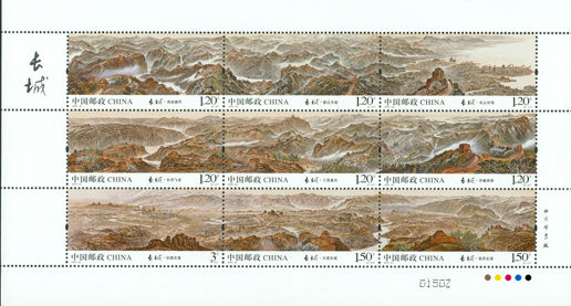 中國郵政于2016年8月20日發行《長城》特種郵票1套9枚,圖案內容分別為: 關山滄海、薊遼天塹、燕趙雄風、京畿屏障、三晉重關、長河飛龍、高原北望、大漠關城、絲路古道。該套郵票以九圖連票的形式全景展現了明代長城沿線的自然風貌和人文景觀,局部細膩嚴謹、整體大氣磅礴,表現了長城氣勢之雄偉、歷史之悠久。該套郵票由著名畫家許仁龍、張濟平共同設計。