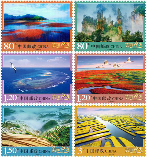 中國郵政于2013年5月19日發行《美麗中國》普通郵票第一組,一套6枚,郵票展現了我國六處風情各異的美麗景觀:霞浦灘涂、張家界天子山、三沙七連嶼、盤錦紅海灘、龍勝梯田、興化垛田。該套郵票由馬立航、姜偉杰設計。