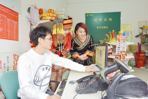 廣西壯族自治區(qū)灌陽(yáng)縣郵樂(lè)購(gòu)新衛(wèi)加盟店店主陳清雅幫“瑤妹”在郵樂(lè)網(wǎng)上挑選商品。
