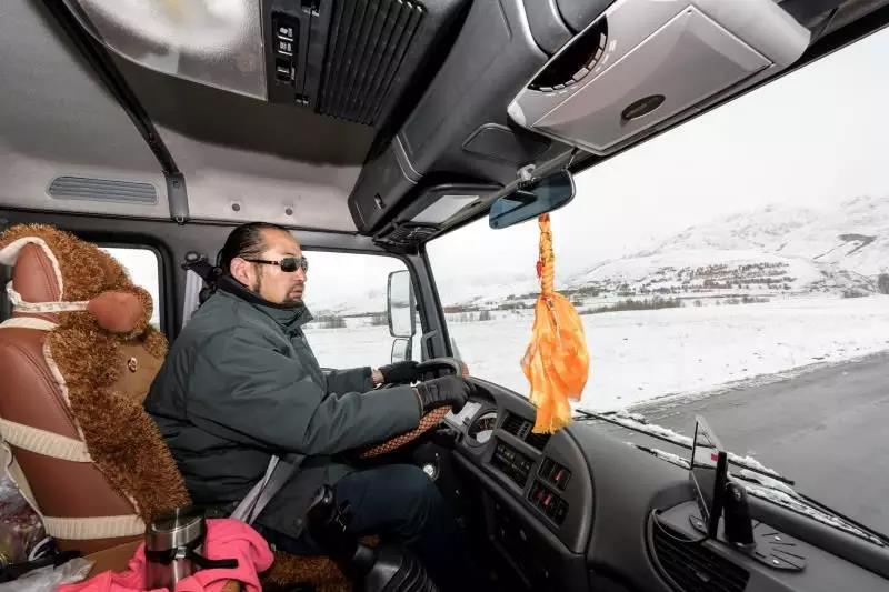 其美多吉已經(jīng)工作30年了,每次運送郵件都是天不亮就出發(fā),迎著朝陽在路上飛馳。給我印象最深的就是郵車里空間很小,勉強可以擠下3個人,而且每次過減速帶的時候,整個人都會被顛簸得飛起來。路上我問其美多吉,你們這個郵車駕駛室空間這樣狹窄,休息都很費勁,不難受嗎?他卻說這輛車是新的,條件不知道比以前好多少倍。以前的車里連空調(diào)都沒有,一開起來灰塵也很大,這輛新車有空調(diào),有一個小小的臥鋪,還有GPS定位,他非常滿意。