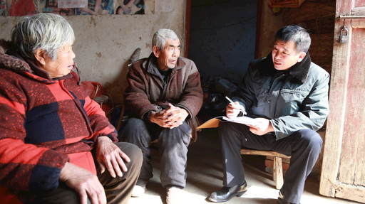 今年1月,殷勇到泗洪縣歸仁鎮村莊走訪調研獨生子女家庭養老問題。張成 攝