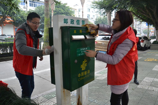 3月5日,浙江省玉環市郵政分公司開展了“擦亮‘郵名片’”志愿活動,組織廣大黨員志愿者對街頭的E郵柜、信箱、信筒進行清洗。此次志愿活動展現了玉環市分公司黨員積極向上的精神風貌。□葉瑋 攝影報道