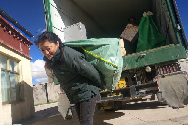 北措鄉(xiāng)二村的次仁卓嘎是益西卓嘎在投遞途中認識的孤寡老人。有一次,雙湖縣下起了數(shù)十年一遇的大雪,當時還在休假中的益西卓嘎,想到老人不便外出,便不顧外面齊膝的大雪徒步20公里來到老人家里,送去了足夠老人吃一周的食物。老人沒有手機,牧民居住地點又時常變換,每次她去看望老人,總要花上大半天時間,這些益西卓嘎從沒和老人說過。