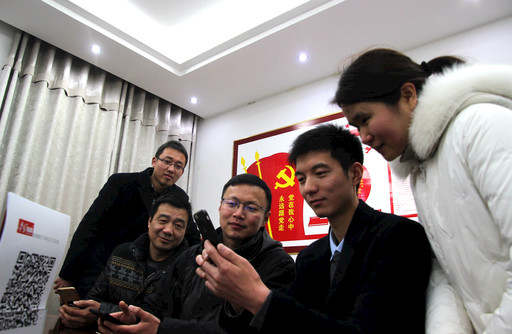 自“學(xué)習(xí)強(qiáng)國(guó)”APP上線以來(lái),郵儲(chǔ)銀行安徽省阜陽(yáng)市分行黨委大力推廣“學(xué)習(xí)強(qiáng)國(guó)”學(xué)習(xí)平臺(tái),并組織全分行黨員積極參與學(xué)習(xí)、答題、考試,每天積分不少于30分,迅速掀起了“學(xué)習(xí)強(qiáng)國(guó)”手機(jī)網(wǎng)上學(xué)習(xí)的熱潮。圖為3月1日,阜南縣支行青年黨員在黨員活動(dòng)室為入黨積極分子講解“學(xué)習(xí)強(qiáng)國(guó)”APP的安裝和使用。 □劉華武 攝影報(bào)道
