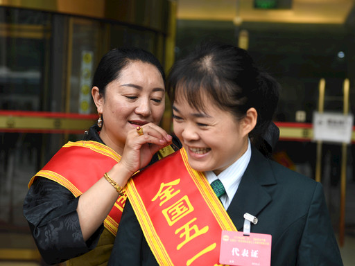 2019年4月23日,慶祝“五一”國際勞動節暨全國五一勞動獎和全國工人先鋒號表彰大會在京召開。郵政系統7人獲全國五一勞動獎章、9單位獲全國工人先鋒號,其美多吉、柴閃閃、益西卓嘎、韋艷梅作為代表,受邀進京參加表彰大會。
