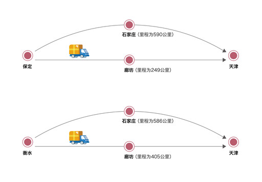 圖表3 設置廊坊區域集散點后,縮短了郵件傳輸距離