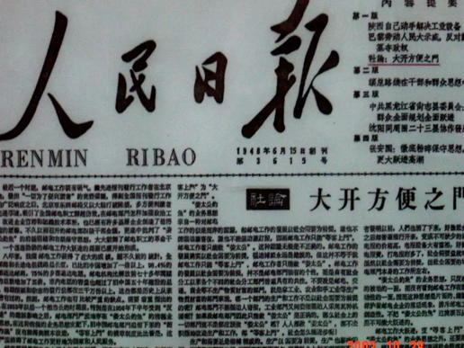 1958年6月2日《人民日報》在頭版發表社論《大開方便之門》