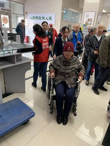 主動幫助行動不方便老人辦理業務的東四郵局員工