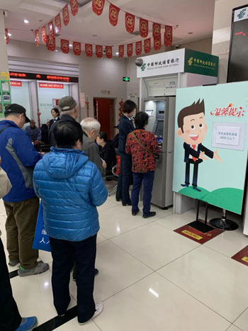 東四郵局副局長樊潔:“6000元以下養老金提取,這里是綠色通道,請您到這里來排隊……”