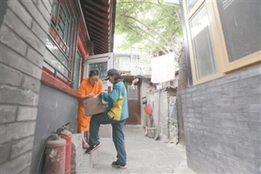 胡同里在修路,碰見快遞小哥的三輪車經過,小梅都要停下自己的電動車,讓他們先過。“他們換人太快,好多都不認識了。我覺得我們要比他們快樂些,時間久了,大家比較熟,用戶對我們的尊重和信任便也多了些。跟人打交道,熱情點大家都舒服。”