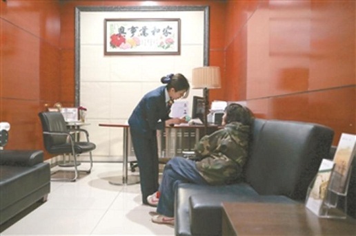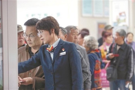 在自動存取款機前,排了十多位老人,樊潔先讓在后面排隊的老人到休息區(qū)的椅子上休息一下,再一個個幫助存取錢的老人辦理業(yè)務。有的老人聽不大清楚,她就湊近耳朵不厭其煩地一字一句地告訴他們,當天上午,樊潔在自動存取款機前站著忙活了兩個多小時。“對我們營業(yè)廳的工作人員來說,要求來有迎聲,問有答聲,走有送聲,唱收唱付聲。只要用情用心服務,就沒有辦不成的事。”她說這是東四郵局的傳統(tǒng)。