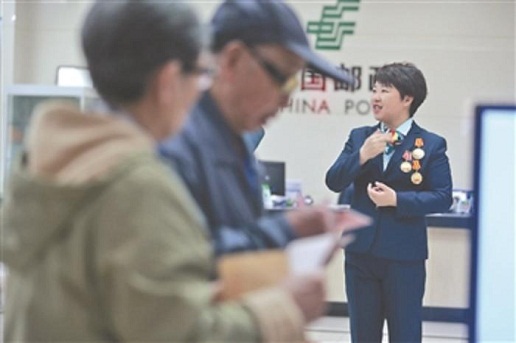 當天上午,作為局長助理的陳蘭穎也在忙乎著,一天下來,光在郵局大樓里就走了1萬多步。快中午時,來了一位聾啞人,陳蘭穎上前和他用手語交流,一直陪他辦理完業(yè)務。陳蘭穎喜歡把東四郵局說成是“家”:“我們局就像一個大家庭,我在這個家感覺特別舒心,我們還要把這種舒心傳遞給用戶,讓大家都舒心。”