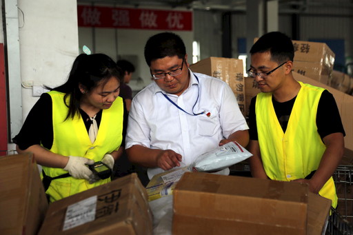 剛走進江蘇省鎮江市郵政寄遞事業部繆家甸郵件處理中心,膠帶伸縮機的“嗡嗡嗡”聲已經傳入耳中,郵件分揀線上的傳送帶一直伸到快遞車廂內。現場各環節員工正忙碌而有序地卸車、分堆、裝車。“我們隨時做好處理郵件的準備!”全省十佳道德模范、鎮江市寄遞事業部“黨員創新工作室”負責人沈振國說道。