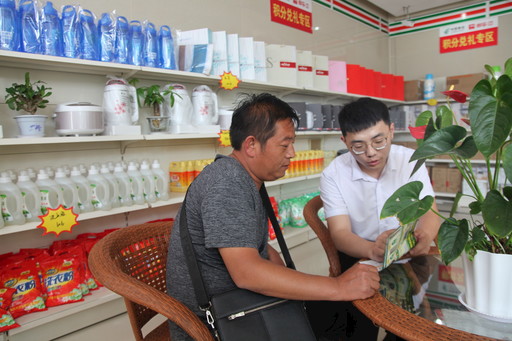 東古城郵政支局理財經理向客戶介紹積分兌換政策。