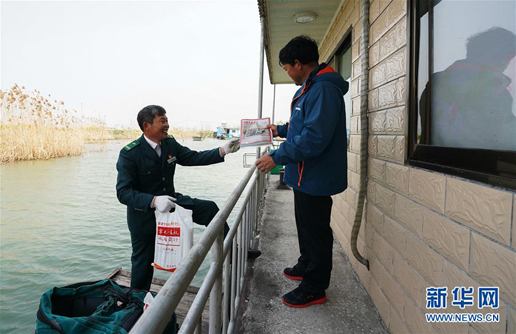 唐真亞是江蘇省淮安市洪澤區(qū)老子山鎮(zhèn)郵遞員,今年55歲。整整20個(gè)年頭,唐真亞在水況復(fù)雜的洪澤湖上,攜帶郵件劃出了20萬公里的“水上郵路”,贏得湖區(qū)漁民的由衷贊譽(yù)。