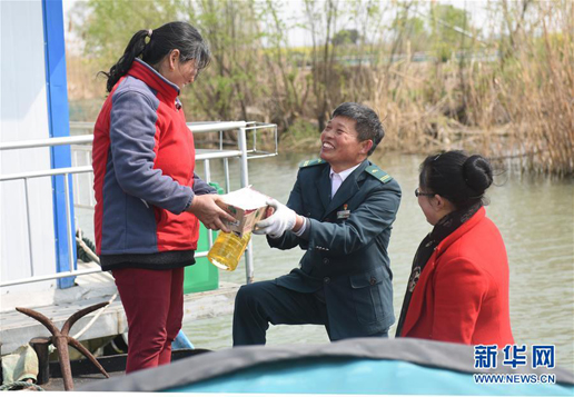 正式上崗后,唐真亞才發(fā)現(xiàn)這個(gè)工作太難干了。一天的投遞工作正常要?jiǎng)澊?0多公里,最多時(shí)40多公里。夏天高溫暴曬,有時(shí)突然就一陣狂風(fēng)暴雨;到了冬天,空曠的湖面上沒遮沒擋,寒風(fēng)徹骨。知道丈夫跑船辛苦,妻子閆玲只要有時(shí)間就會(huì)陪著唐真亞一起跑這條“水上郵路”。同樣是漁民的女兒,閆玲船上的活計(jì)樣樣在行,為唐真亞減輕不少負(fù)擔(dān)。