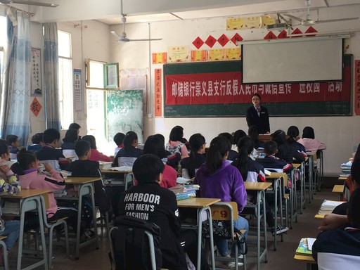揚(yáng)眉鎮(zhèn)支行員工進(jìn)校園為學(xué)子送去金融知識。