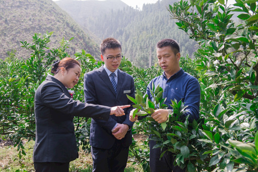 揚(yáng)眉鎮(zhèn)支行信貸客戶經(jīng)理走訪臍橙客戶了解金融需求。