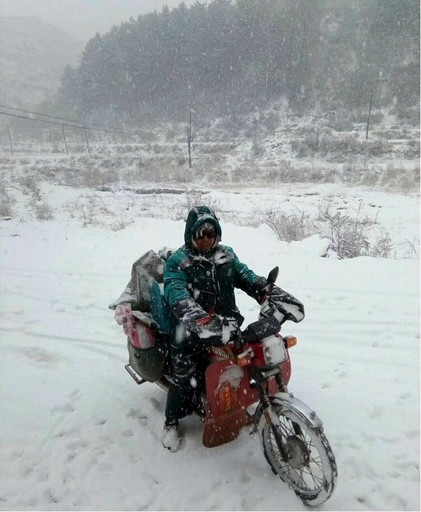 10多年前的孟山鄉(xiāng),條件十分艱苦,環(huán)境十分惡劣。那時(shí)的孟山鄉(xiāng)一帶鮮有橋梁,每次暴雨時(shí)節(jié),郭成明為了不讓用戶的郵件受到損失,每次過河前都將郵件用塑料包好,冒著大雨往返河流15次,將郵件完好無損地交到收件人手中。雖說每次都是有驚無險(xiǎn),但長(zhǎng)途的跋涉“危險(xiǎn)”也常伴左右,記得那是2010年冬天的一個(gè)傍晚,天色漸暗,他送完最后一個(gè)郵件想趁著天還沒有全黑趕回家中,可就在出村不遠(yuǎn)的一條羊腸小道上,前方突然出現(xiàn)大片暗冰。他急踩剎車后,摩托車朝著路邊深溝沖了過去。他急忙握緊車把調(diào)轉(zhuǎn)方向,卻又撞向了路邊的山崖,重重地將他摔在了地上。這一次的經(jīng)歷造成了郭成明腿部靜脈曲張、腰椎間盤突出的傷痛,可他仍然堅(jiān)持在這條郵路上跋涉,從來沒有抱怨過。