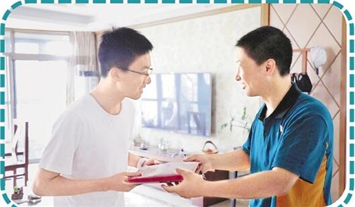 “這幾日,我早上7時(shí)就會(huì)過(guò)來(lái)準(zhǔn)備收件。暑期錄取通知書(shū)多,寄送要求高,要提前準(zhǔn)備,規(guī)劃路線。”董華遞來(lái)兩套工作服,按照約定,我們要跟著他送件一天。
