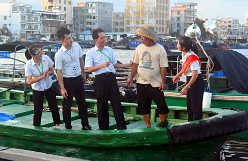 蔡德余和他的團隊成員向漁民了解貸款需求。