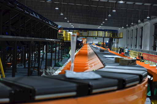 3、2、1!11月11日0點,“雙11”購物節的號角正式吹響,淘寶、天貓等購物平臺上頓時“硝煙四起”,訂單數據瘋狂跳動。廣州華南陸路郵件處理中心現場,緊張的氣氛在空氣中彌漫。矩陣分揀設備和小件分揀機上,一個個綠色郵袋穿梭如織、一件件郵件快速地分揀。滴滴的掃描聲、隆隆的機器運轉聲、嗒嗒的腳步聲,夾雜著技術人員熱烈的討論聲,擠滿22000平方米的空間。高速運轉的皮帶機不知疲憊,在一圈圈旋轉中迎接“雙11”大考。