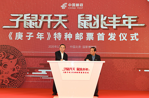 1月5日,《庚子年》特種郵票首發(fā)儀式在中國(guó)國(guó)家博物館舉行。該套郵票設(shè)計(jì)者、著名藝術(shù)家韓美林,中國(guó)郵政集團(tuán)有限公司董事長(zhǎng)劉愛(ài)力、國(guó)家博物館館長(zhǎng)王春法等出席儀式。劉愛(ài)力與韓美林共同為《庚子年》特種郵票揭幕。
