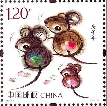 庚子鼠年生肖郵票第一圖名為“子鼠開(kāi)天”,取自民間傳說(shuō)“鼠咬天開(kāi)”,萌動(dòng)之鼠騰空躍起,咬破混沌,遂成宇宙,寓意國(guó)家取得了開(kāi)天辟地、繼往開(kāi)來(lái)的巨大成就;第二圖為“鼠兆豐年”,三只小鼠一副歡喜自得模樣,寓意闔家歡樂(lè),花生圖案一派豐收景象,寓意2020年五谷豐登、闔家歡樂(lè)。畫面運(yùn)用裝飾小寫意的畫法,結(jié)合傳統(tǒng)國(guó)畫的渲染技藝,展現(xiàn)了生肖鼠的可愛(ài)萌動(dòng),預(yù)示著偉大祖國(guó)的繁榮富強(qiáng)。