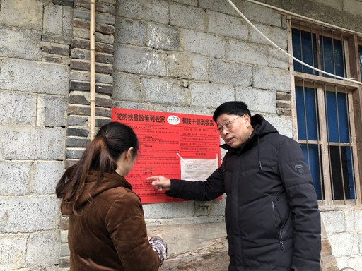 陳澤維向6組貧困戶龐召華的妻子詳細(xì)講解可享受的低保、教育資助、危房改造補(bǔ)貼、無(wú)障礙廁所改造、免交合作醫(yī)療費(fèi)用等扶貧保障政策。在布袋溪村,每家貧困戶門(mén)前都張貼著“扶貧干部到我家”的公示牌。