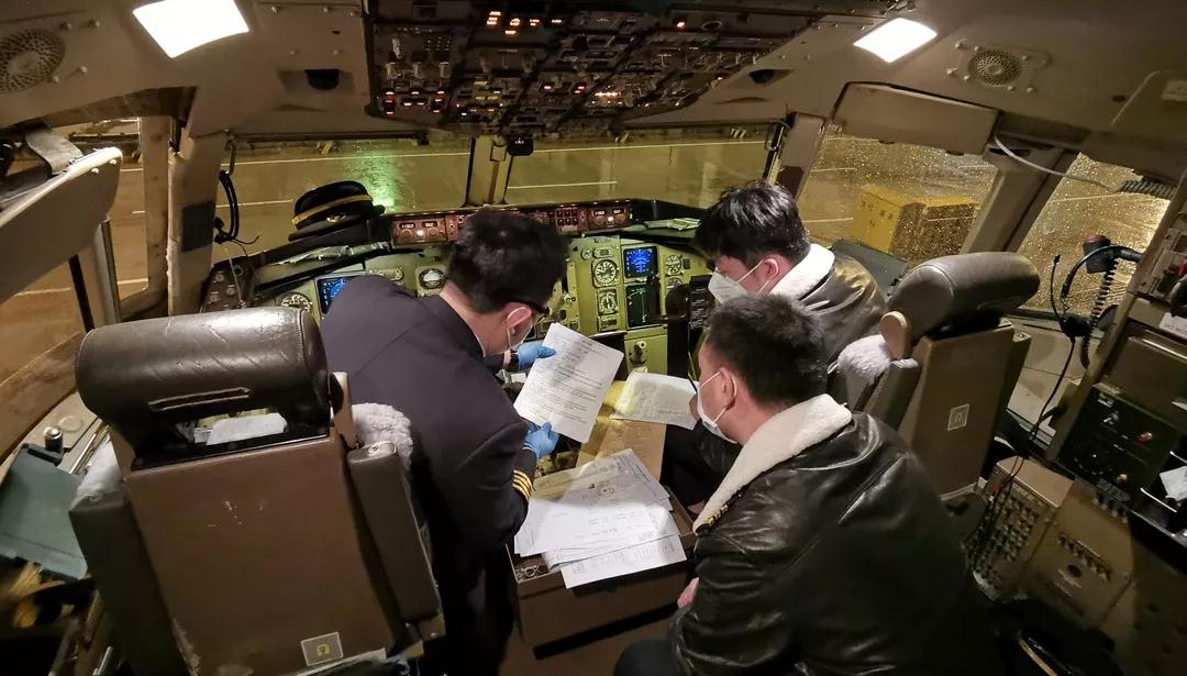今天執飛南京至武漢正班CF9016航班的是金文華(機長)、梁慶軍、王政機組,此后他們又馬不停蹄執飛了南京至武漢加班專機CF9125航班。這也是該機組第五次執飛運輸防疫醫療物資專機。