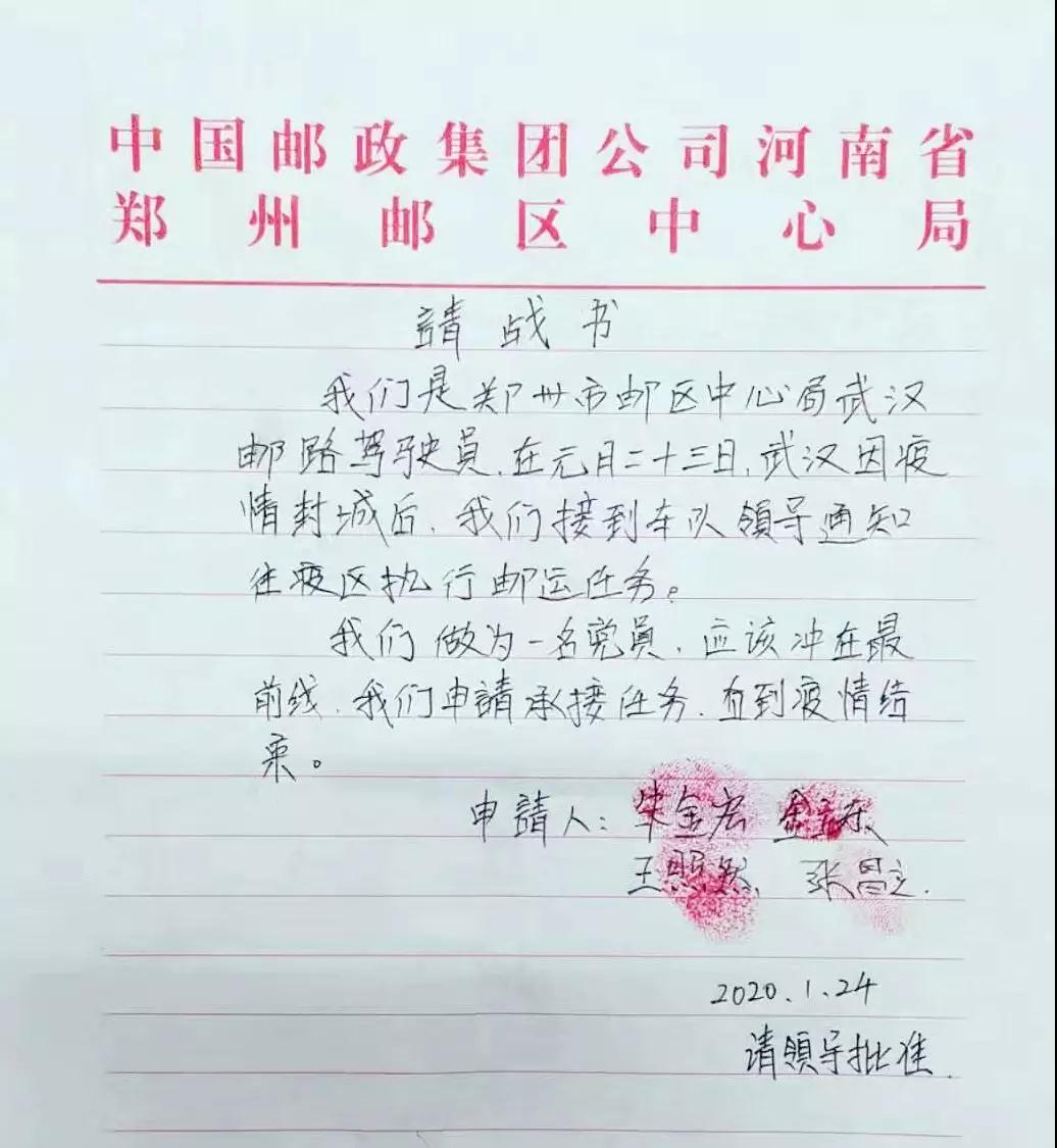 “這是1月23日武漢封城后,我第4次執行往武漢運送醫療物資的任務。因為從回來后都要接受隔離觀察,吃住在單位,可能長時間都回不了家。為了大家的生命安全和身體健康,面對這項特殊的任務,我和王照然、朱金宏、金玉東等武漢郵路的黨員們一起向運輸中心黨支部遞交了請戰書,自愿承擔武漢郵運任務,直至疫情結束。從大年初一到現在,我已經一個星期沒有回家了,但是作為一名共產黨員,也是一名退伍老兵,我認為這是我應該做的。” 張昌立說。