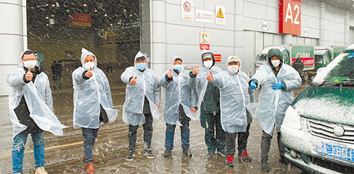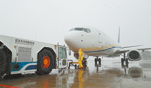 郵航直飛航班滿載防疫物資頂風(fēng)冒雪抵達(dá)武漢天河機場。 楊衛(wèi)東 提供
