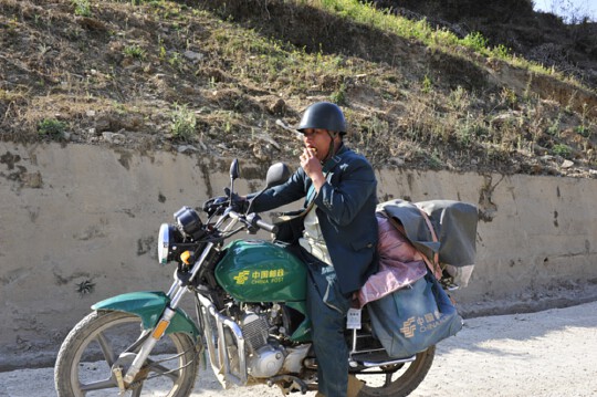 簡單吃過中飯,桑南才將郵袋綁在摩托車后座上,彎腰緊了緊鞋帶,再跨上磨得泛白的帆布郵包,驅車向大山深處進發(fā)。