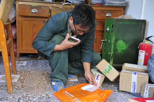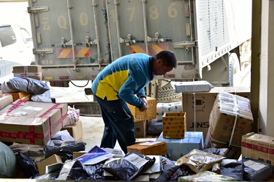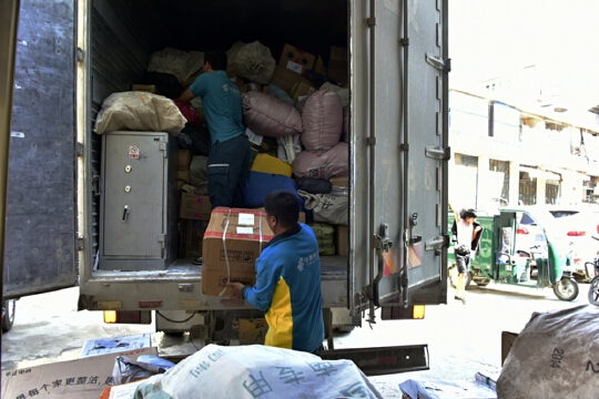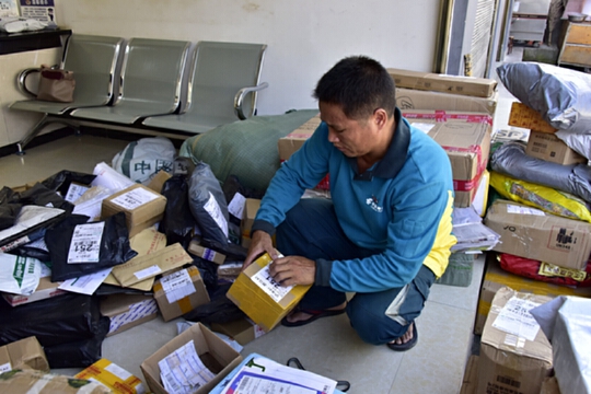 新年第一天,盡管屬法定節(jié)假日,但從州府六庫方向發(fā)來的郵車還是如約抵達郵政所。桑南才打開車廂門——又是滿滿一車包裹!桑南才記得,1987年自己剛到所里上班時,郵車隔天才一班,一個月也就200來份郵件。現(xiàn)在每天兩班郵車,一天的郵件量都快到200件了。
