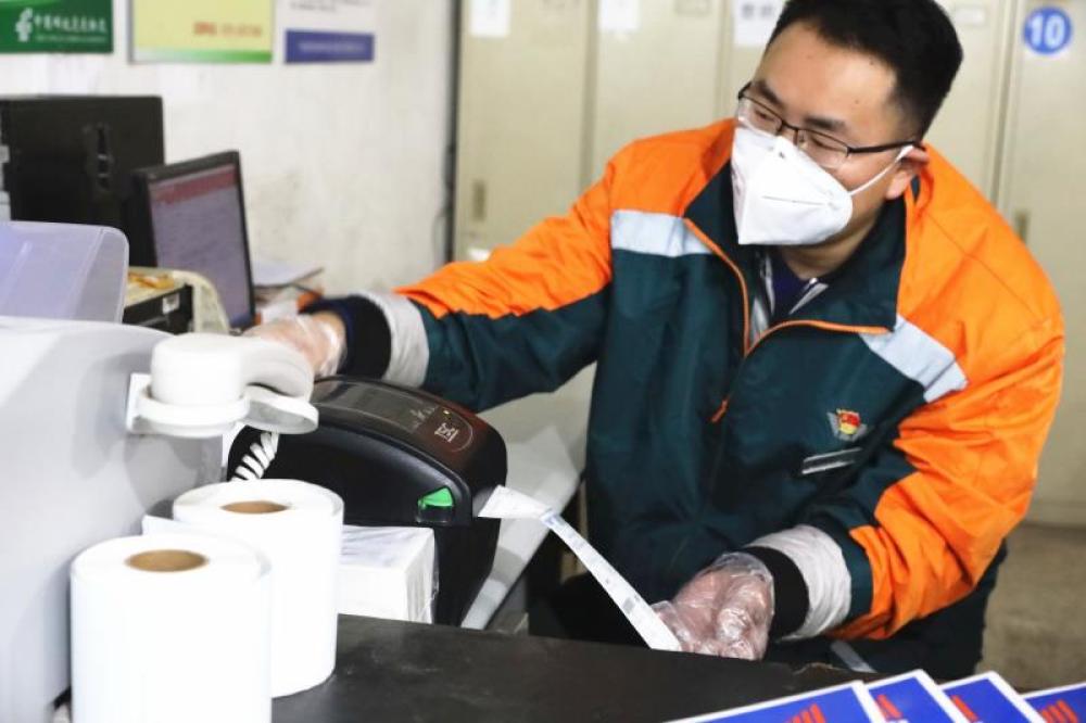 在青島各區(qū)市郵政公司攬投部,郵政工作人員根據(jù)政務(wù)網(wǎng)接收的投遞信息認(rèn)真核對,并打印快遞單,依次粘貼在裝著口罩的快遞袋上,然后根據(jù)地址分配給負(fù)責(zé)相應(yīng)投遞段道的投遞員。