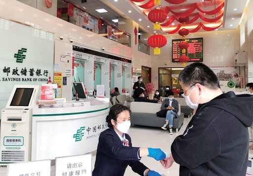 為保證員工及客戶安全,武漢市分行在各網(wǎng)點均安排保潔員每日不間斷為廳堂和自助銀行消毒,并設(shè)置網(wǎng)點內(nèi)外緩沖區(qū)、等候區(qū)、經(jīng)辦區(qū)三個區(qū)域,做好人員防控、消毒和業(yè)務(wù)辦理工作。該分行網(wǎng)點除測量體溫、掃健康碼等舉措外,還在網(wǎng)點外設(shè)立臨時桌椅,搭建臨時帳篷,供限流客戶遮風(fēng)擋雨、休息等候。
