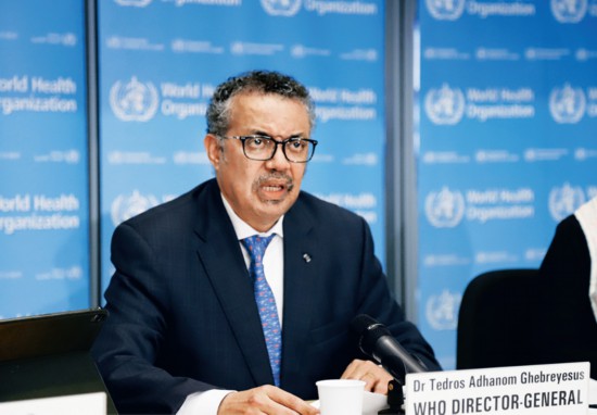 2020年2月17日,世界衛生組織總干事譚德塞在世衛組織有關新冠肺炎的例行記者會上說,中國疾病預防控制中心最新發布的有關新冠肺炎的流行病學報告,為世衛組織向各國提出防控疫情的合理建議提供了幫助。 新華社記者 陳俊俠/攝