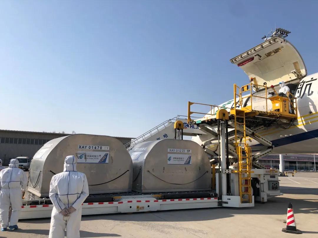 4月15日下午,湖北省捐贈黑龍江省的近3000萬元醫(yī)用防護物資和醫(yī)療救治設備,通過CF9111(波音737-800)、CF9116(波音757-200)、CF9128(波音737-300)三架郵航包機從武漢天河機場相繼運抵哈爾濱、牡丹江機場。作為首家執(zhí)行向綏芬河運輸緊急醫(yī)療物資的航空公司,這也是中國郵政航空公司自1月26日執(zhí)行防疫物資運輸包機重大任務以來,首次在一天內(nèi)同時啟用三架飛機、三種機型進行運輸作業(yè)。隨后,這批物資將由黑龍江省郵政分公司點對點以最快速度送達綏芬河。