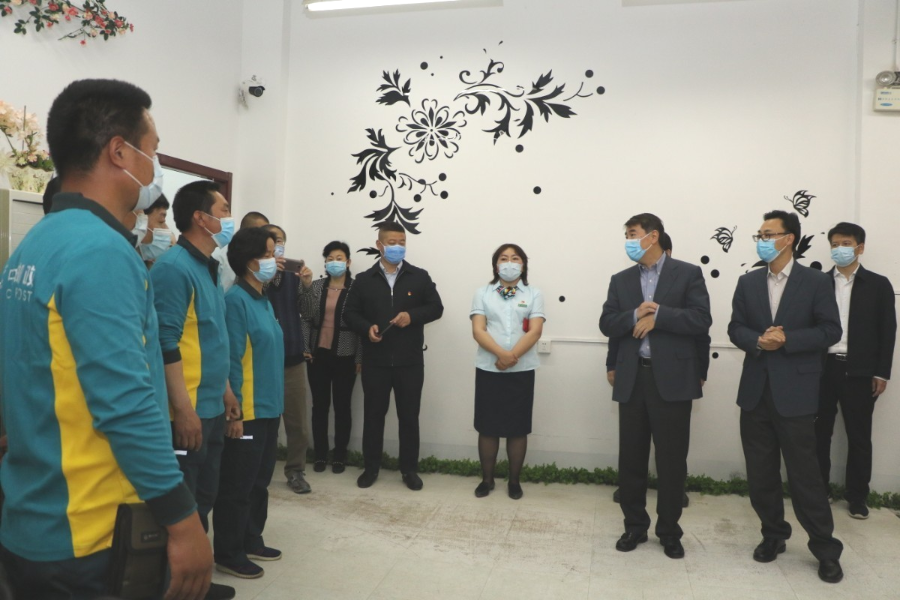 在五一國際勞動節來臨之際,中國郵政集團有限公司黨組副書記、集團工會主席李丕征,集團公司黨組成員、總會計師郭成林一行于4月27日來到北京市海淀區郵政分公司萬壽路攬投部,代表集團公司黨組看望慰問疫情防控期間堅守服務崗位的郵政員工,為一線員工送上集團公司黨組和工會的親切關懷與節日問候。